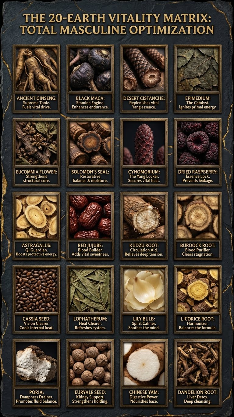 Stress, late nights, alcohol, and past habits can drain your "Jing" (Vital Essence), leaving you feeling hollow, soft, and exhausted. The Titan Protocol™ is not a quick fix—it is a deep-root reconstruction of your masculine foundation.